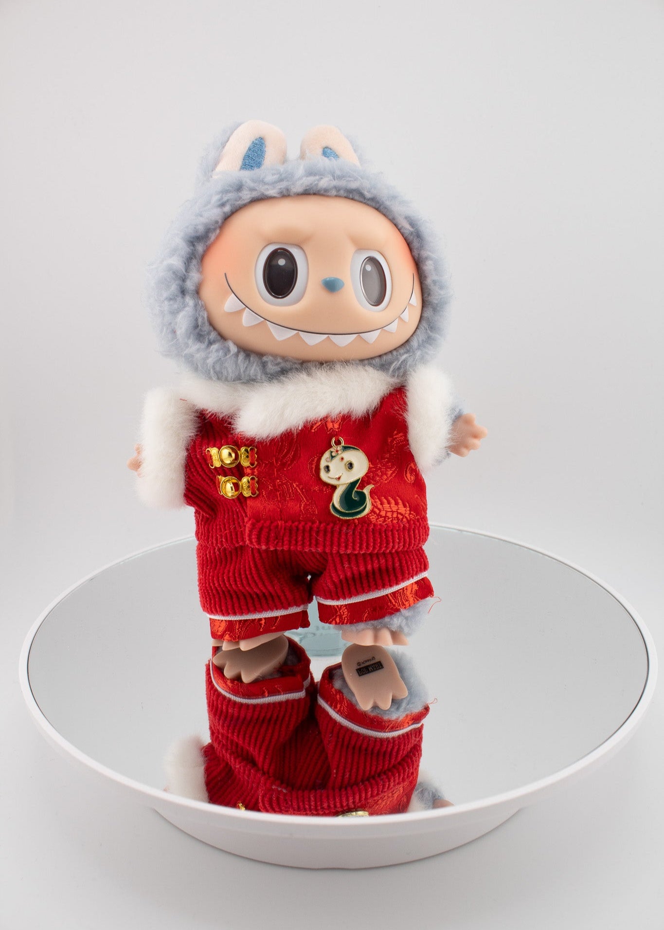 Ring in the Lunar New Year with joy and style by dressing your Labubu doll in the Lunar outfit. This festive ensemble includes a vibrant red dress adorned with traditional patterns and a matching headpiece, capturing the spirit of celebration and good fortune. Perfect for commemorating the season or as a delightful display piece.