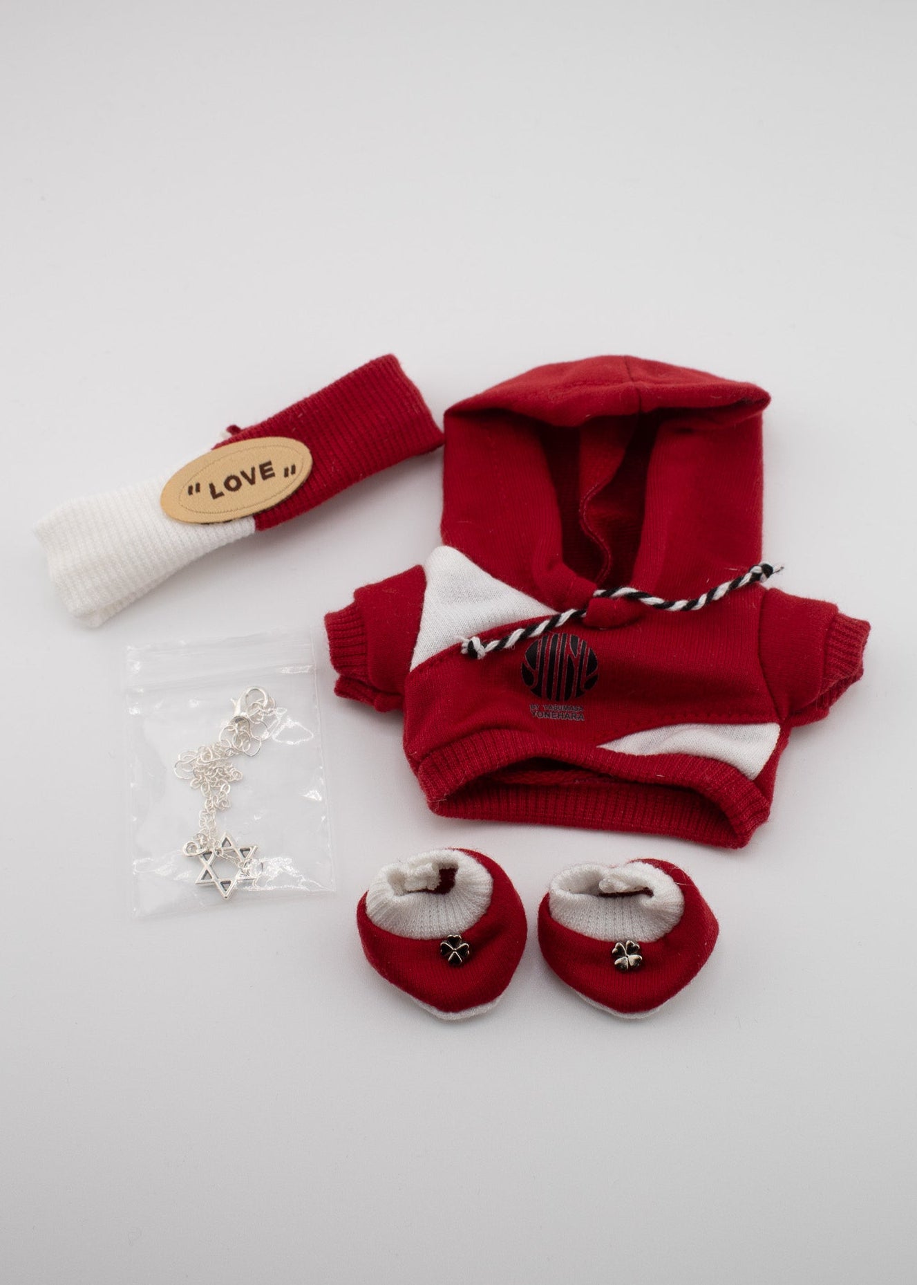 The Steezy set is the ultimate in street style, featuring a bold red hoodie paired with a sleek jacket, trendy headband, and a cool chain. This set combines comfort and swag for a look that's effortlessly fresh.